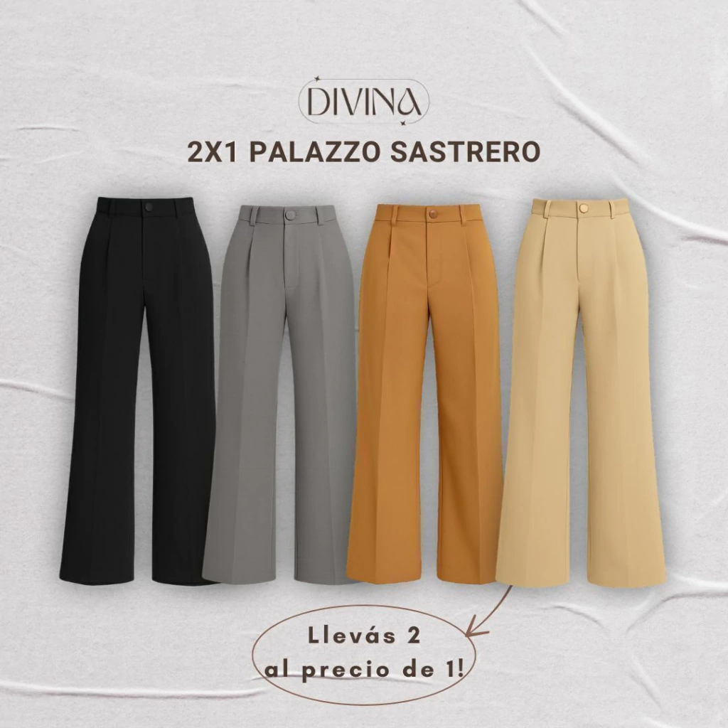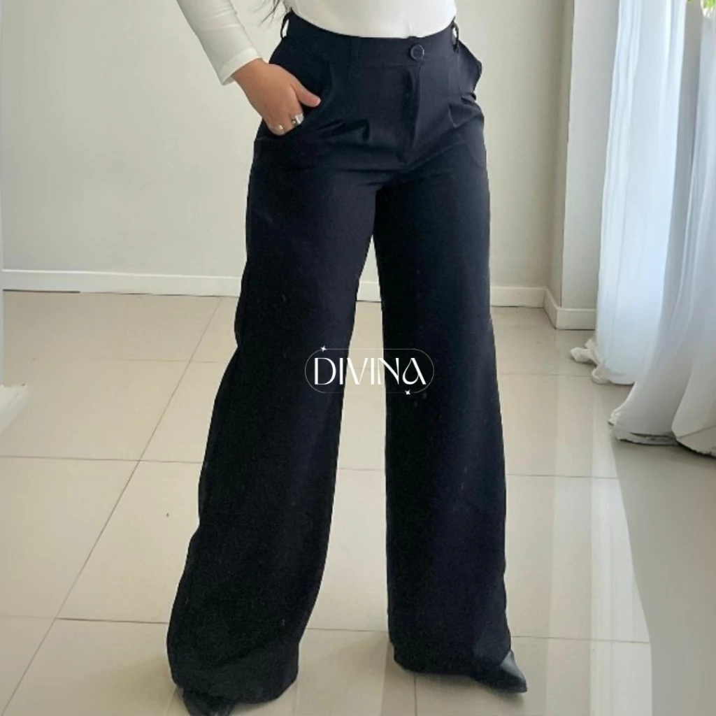Calce sastrero, tiro alto y pierna amplia tipo palazo. Favorece a todos los tipos de cuerpo.